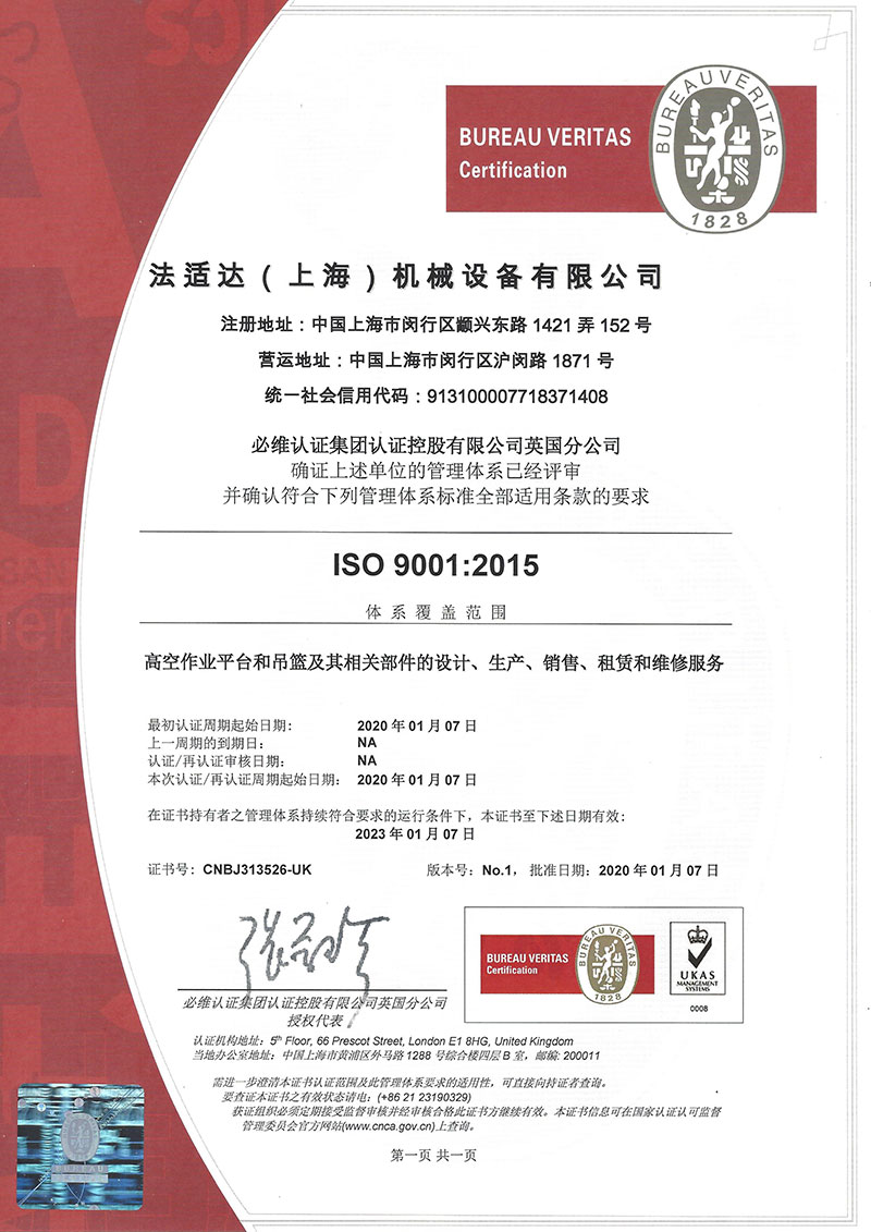 法適達(dá)公司ISO9001-2015通過(guò) 時(shí) 間:2020-02-24 10:38:50 瀏覽次數(shù):3596 法適達(dá)公司通過(guò)ISO9001:2015認(rèn)證: